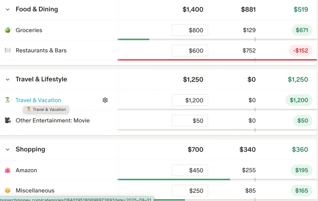 6. Quick glance at my Monarch app. I check my budget thresholds in the Monarch app, especially mid-month, for flexible categories like groceries, dining out and Amazon purchases. It helps me know whether I still have wiggle room or if I already went overboard.